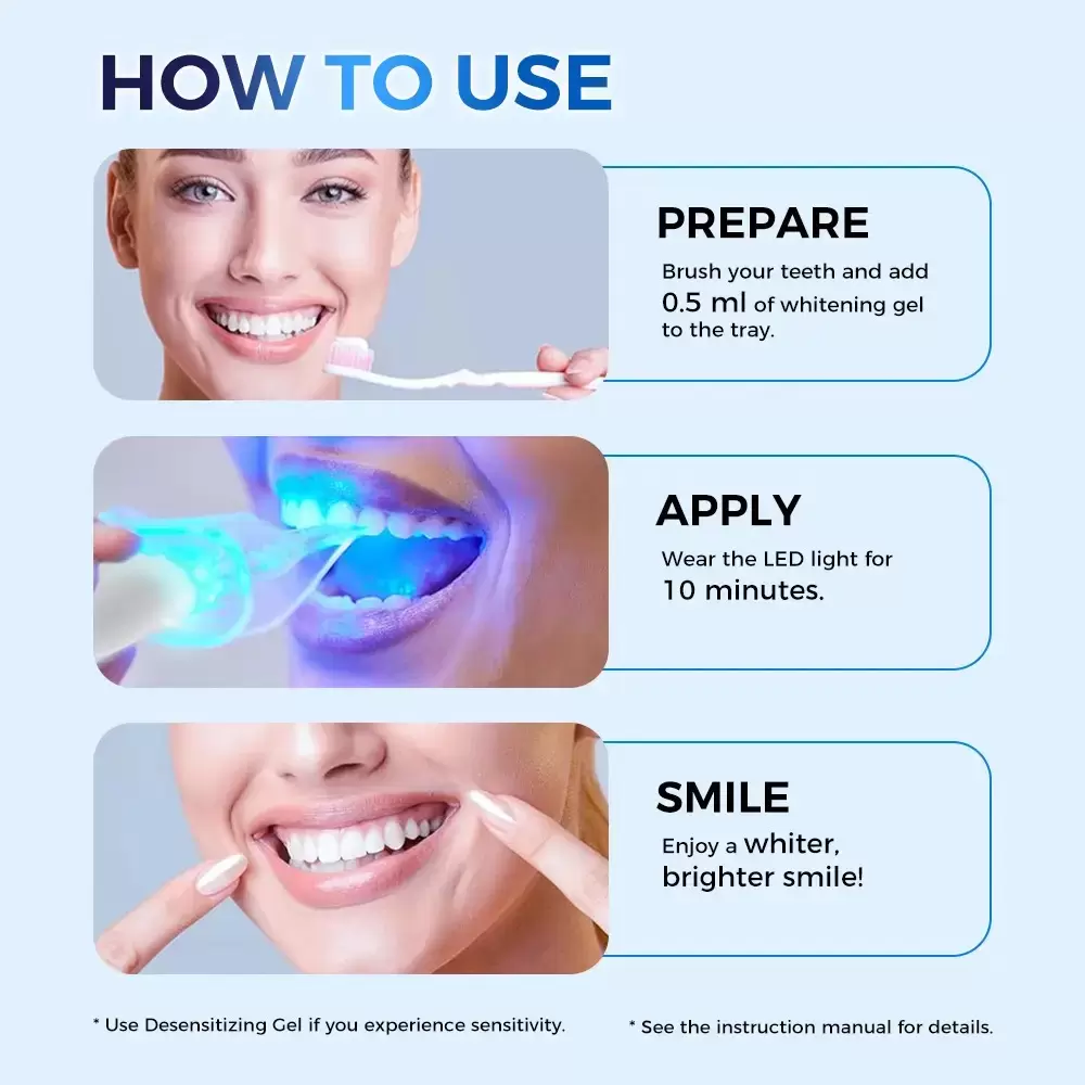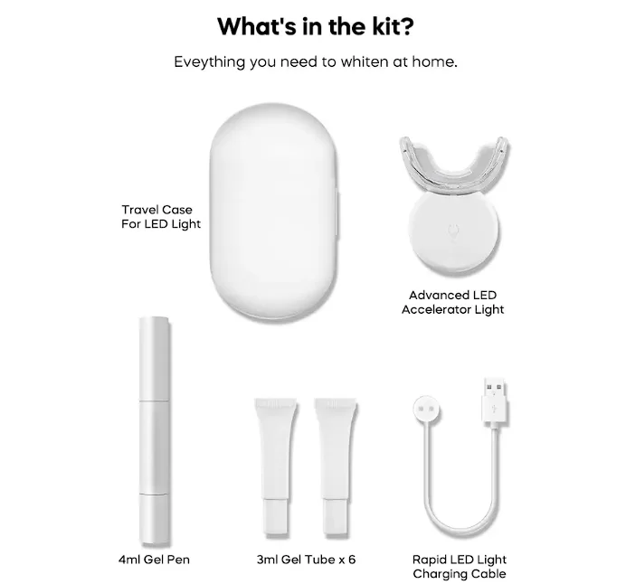 - LED Light Technology:Accelerates whitening for faster, brighter results.