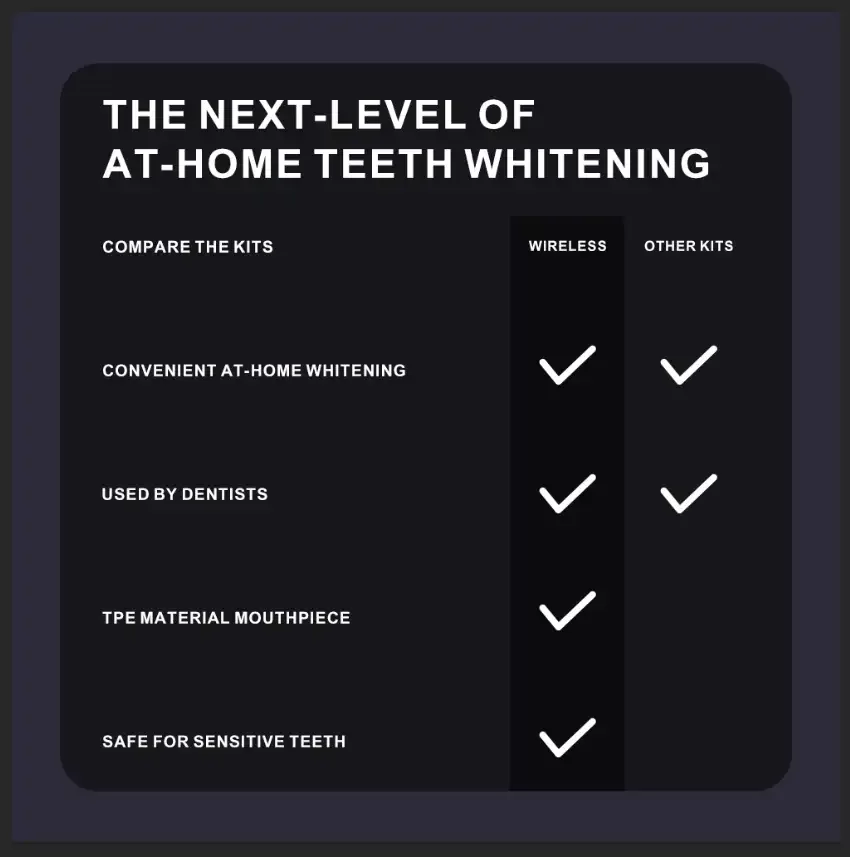 Headline: The affordable, wireless way to whiten teeth at home. See visible results from day one.